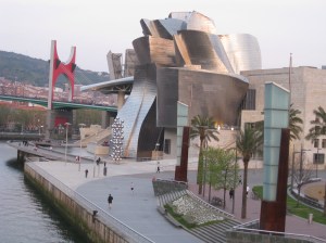 We decided the 30 minute walk from the bus station to our hotel would be good practice for the 800km walk we were planning on starting in the next few days. As we wandered through parks, across old bridges, between new and old buildings, the sun began setting over the city, illuminating the Guggenheim and its surrounding sculptures with brilliant colours.