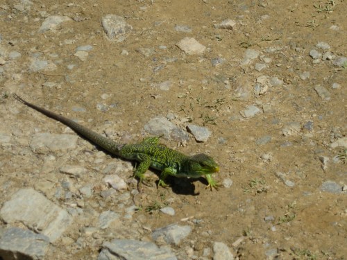 We had been teased by stories of all the amazing wildflowers, butterflies and lizards that we would see on the Camino de Santiago. However, in the cold weather they had all gone back into hibernation (as we probably should have too). So it was with great delight that we saw lizards on the climb to O Cebreiro. At first it was just their tails as they scampered away upon our arrival, diving into the undergrowth. As we got higher and their shelter was reduced, we saw some amazing lizards basking in the sun. One cheeky guy even ran towards us to check us out!