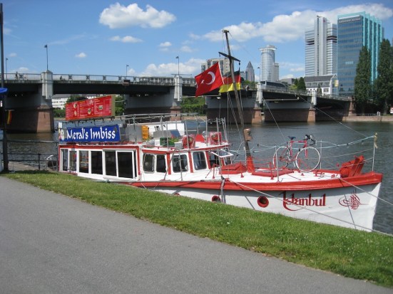 And finally we stopped in Frankfurt before flying back to Italy. Frankfurt has a bad reputation as being a ‘boring grey business city.’ We however, were spoilt with blue skys, a vibrant city (especially as Germany were playing a game in the football world cup), a Dieter Rams exhibition, good kebabs (from a river boat shop) and a cool old town to amble around.