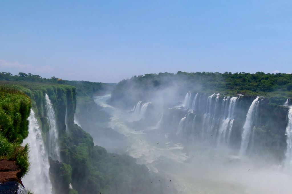 Not to be outdone by its neighbour, the Argentinian side of this wonder of nature blew me away yet again. I felt dizzy as I looked over the edge of the platform we were standing on as I realised we were hanging right over the edge of the Devil’s Throat. And that’s quite high. But really it’s because there’s nothing more incredible than being almost in the falls themselves, watching the water fall over the edge of the cliff and into the river below, seeing the mist rising up from the river as it flows between Argentina and Brazil, heading off towards Paraguay.
